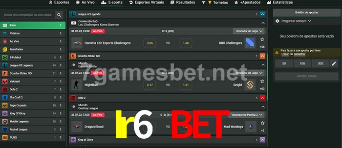 O Ir6 Bet oferece uma grande seleção de opções de apostas em e-sports com probabilidades competitivas